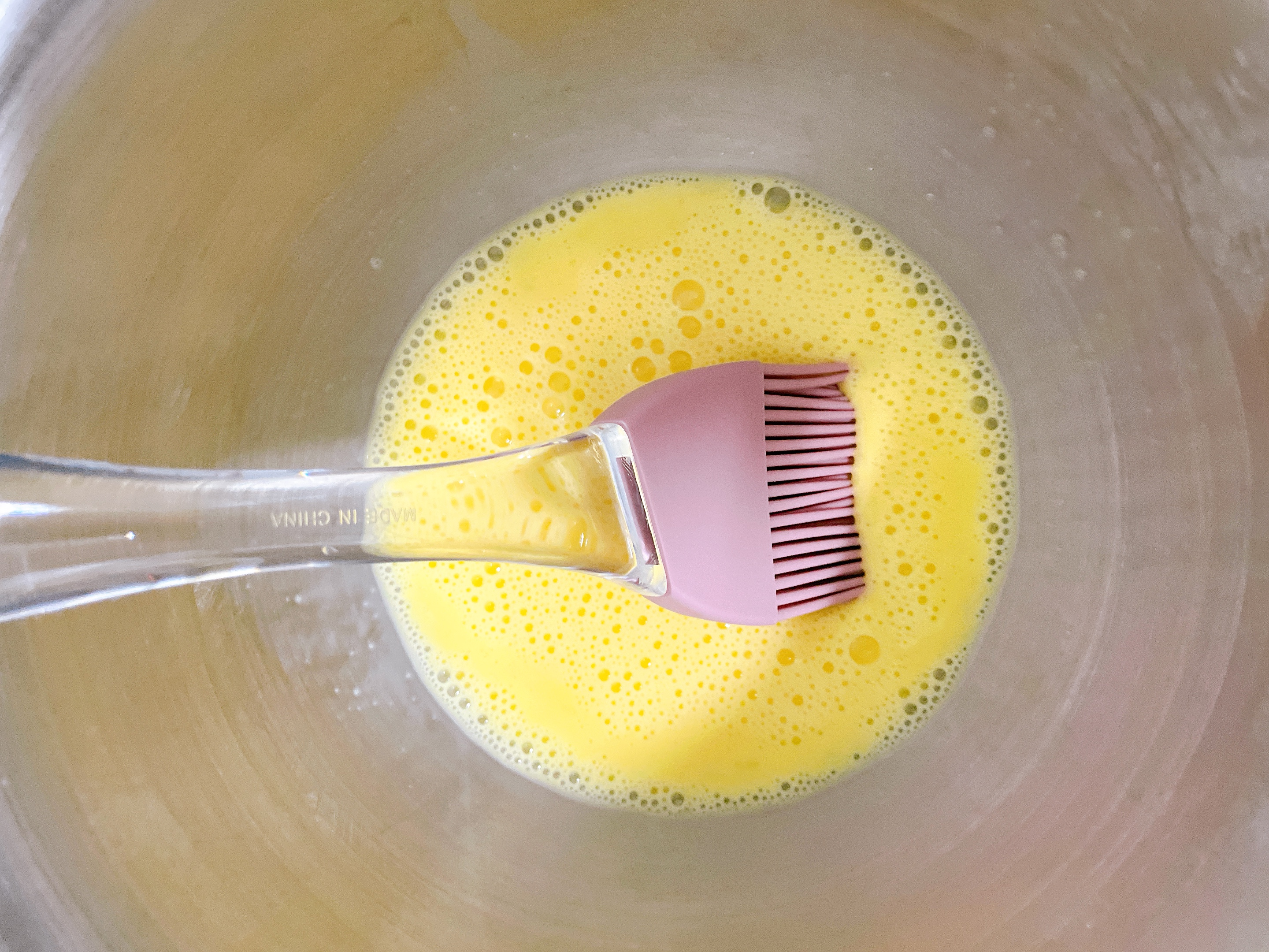 그리고 계란 1개와 우유 2 스푼 넣고 계란물을 만들어줘서 그걸 붓에 찍어서 발라주면 된다.