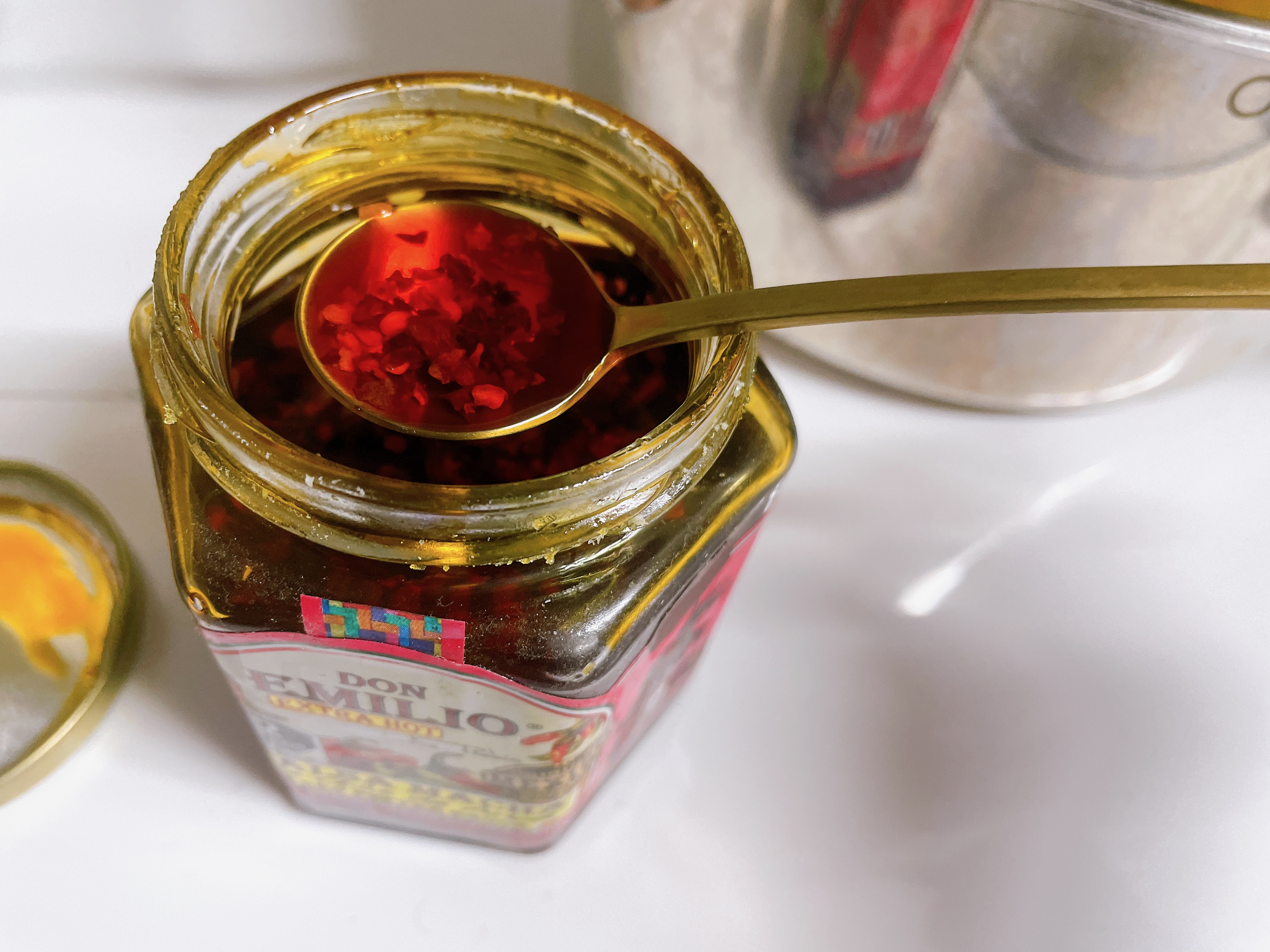 멕시코산 고추기름을 한스푼 넣어줬어요.