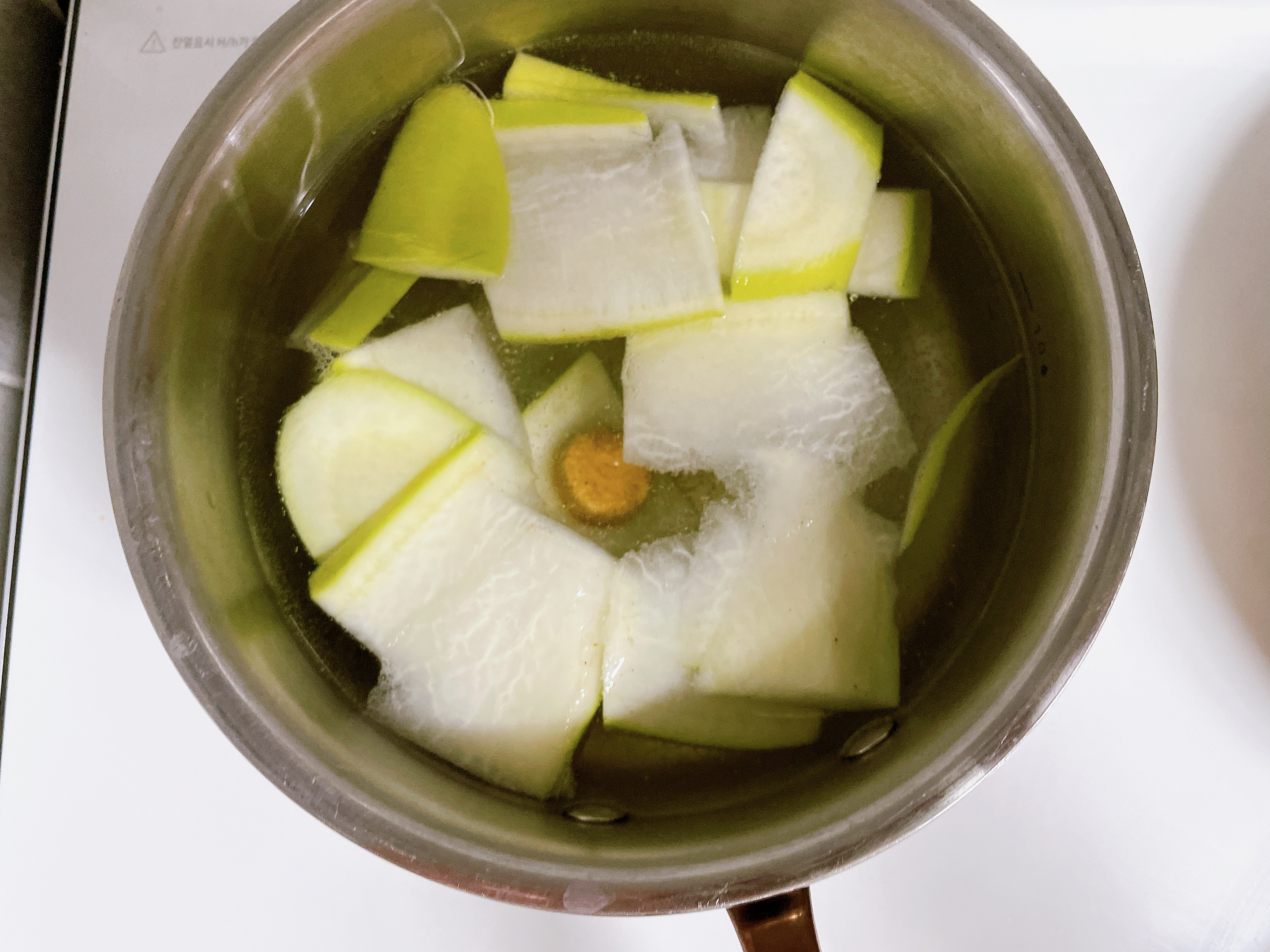 무우를 채썰어서 준비해주고 물에다가 나는 멸치간편육수 건조된 한알을 같이 넣어 끓여줬다.
