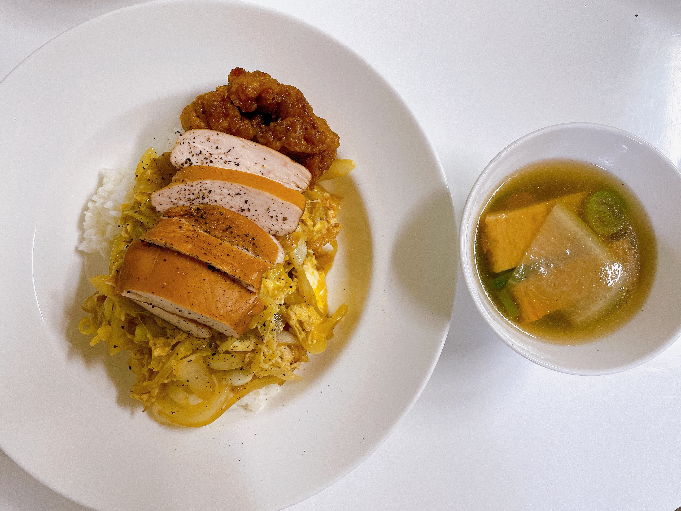 어제 먹고 남은 치킨+ 닭가슴살 계란덮밥과 함께 먹는