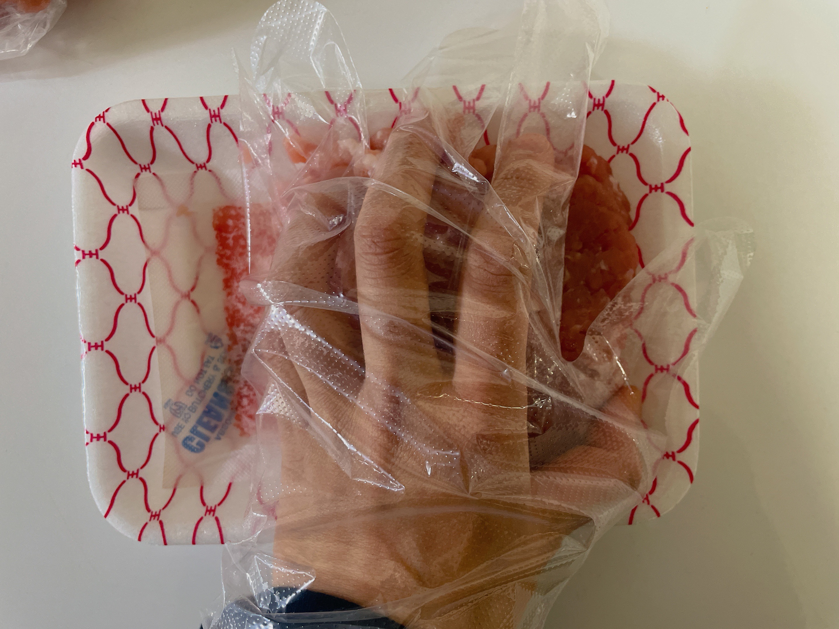 고기를 위생장갑으로 만지니 따로 ~ 도구를 이용하지 않아도된다.