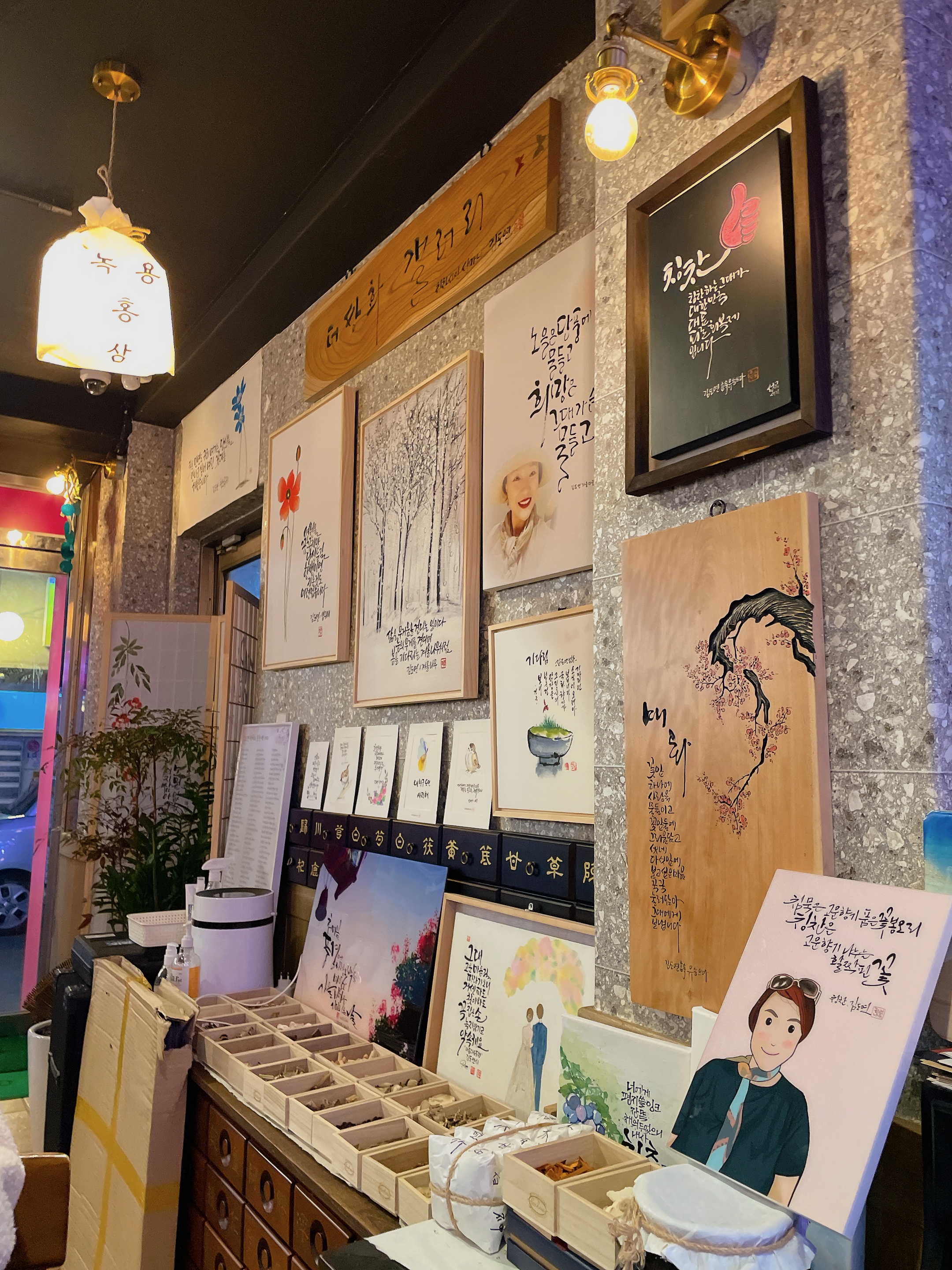 쌍화탕 찻집 옆에는.. 아마 찻집 따님이 아닐까 예측되는 분의 작품들이 걸려있다.