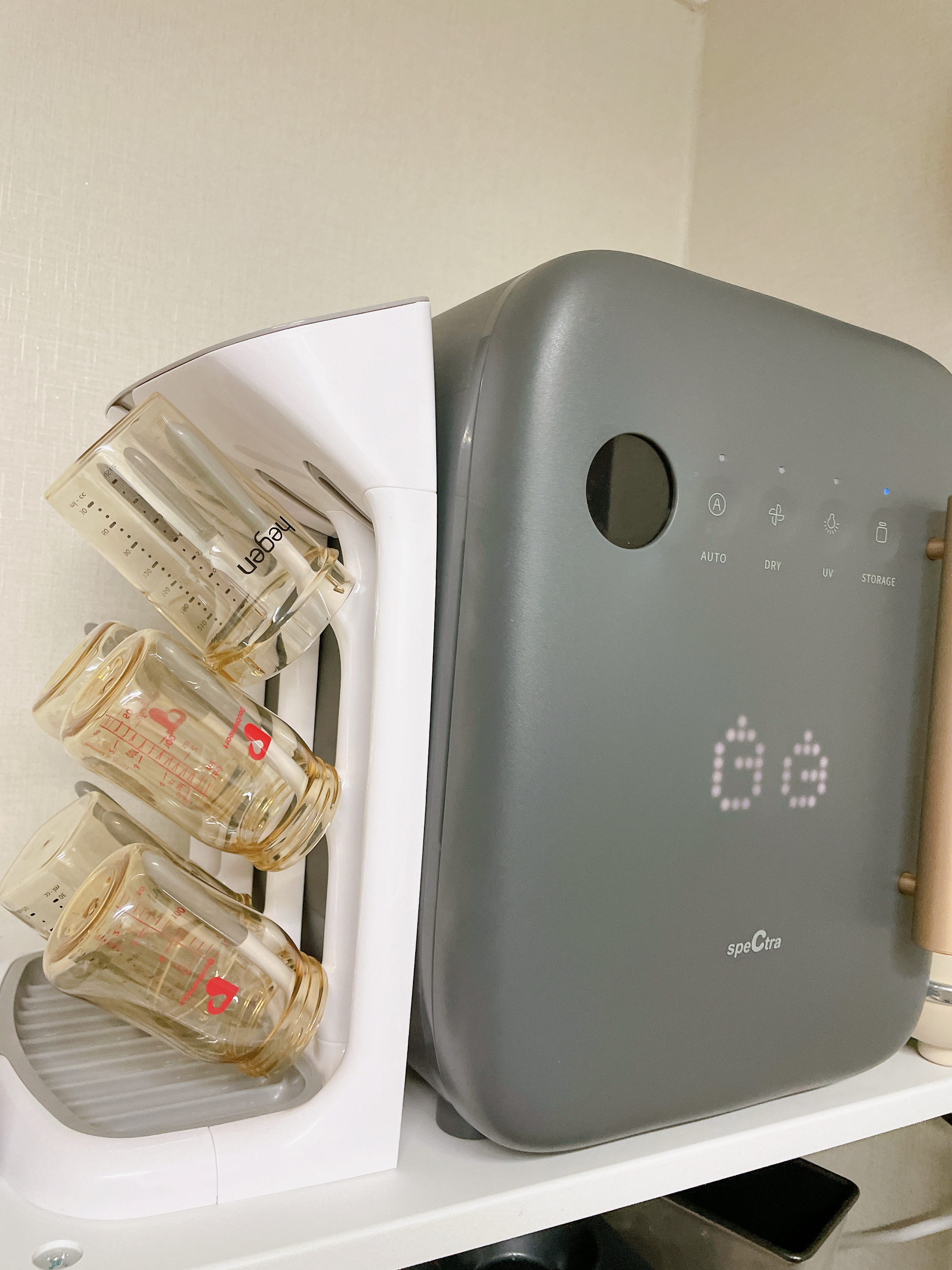나는 스펙트라 UV 소독기를 사용하는데, 저온살균이라 내부가 바짝 건조되진 않아서. 소독기를 사용하고도 건조대에
