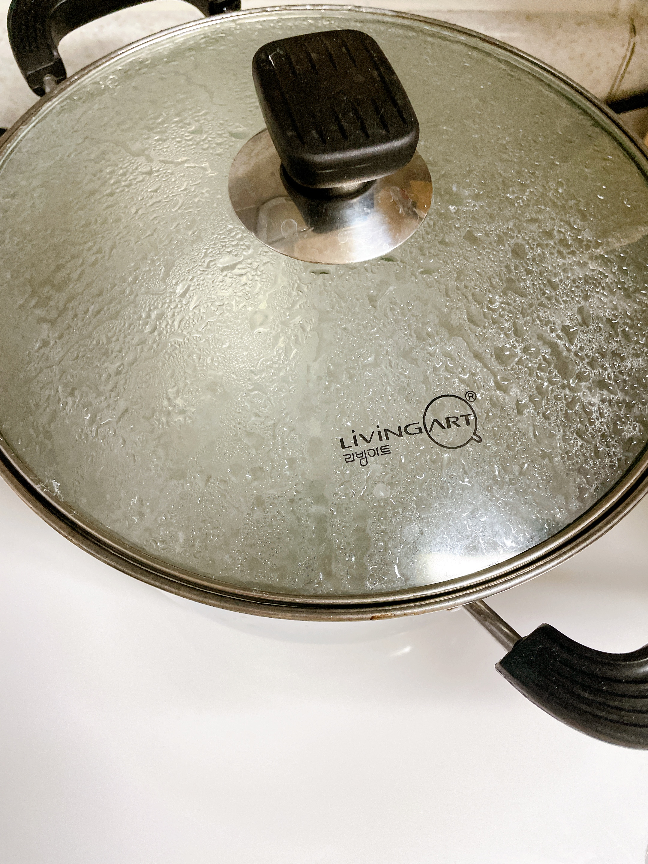 물이 팔팔 끓으면 한 3-4분 정도 끓은 물을 유지해서 끓여준다.