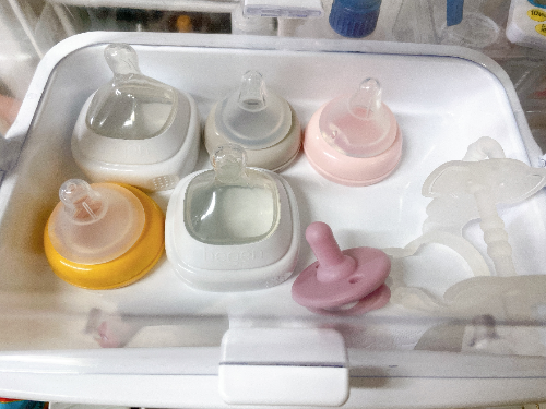 다 건조되면 젖꼭지를 조립해서~ 젖꼭지는 따로 보관통에 보관해둔다.