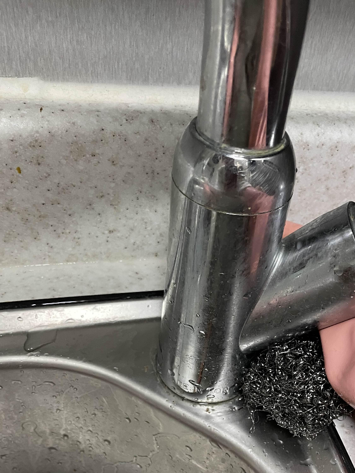 그리고 싱크대와 연결되어있는 수전 (물 트는곳) 아래도 참 묵은때가 잘 낀다. 여기는 버리는 칫솔로 닦아주고.. 그것도 잘 안닦여지는 것들은
