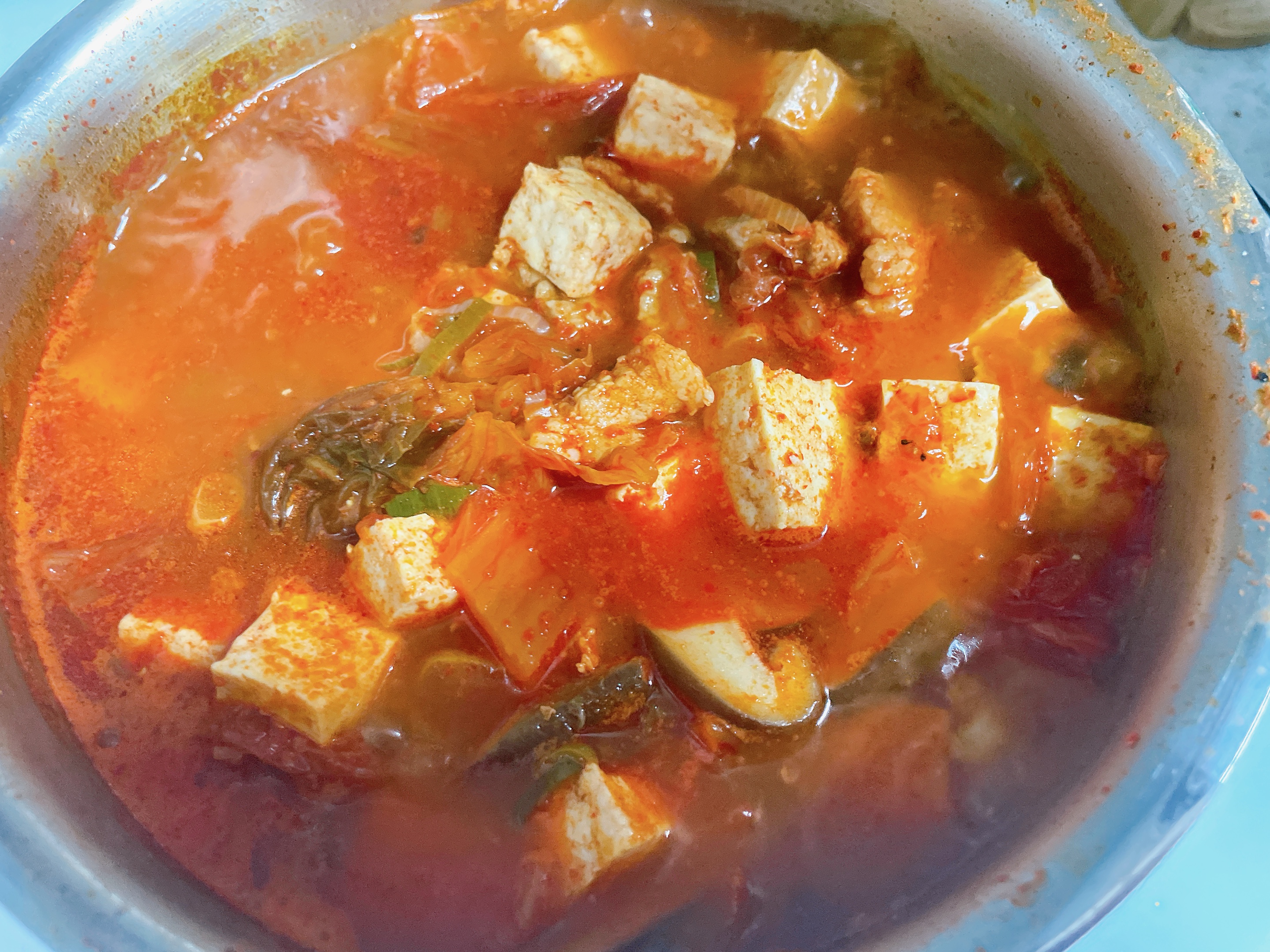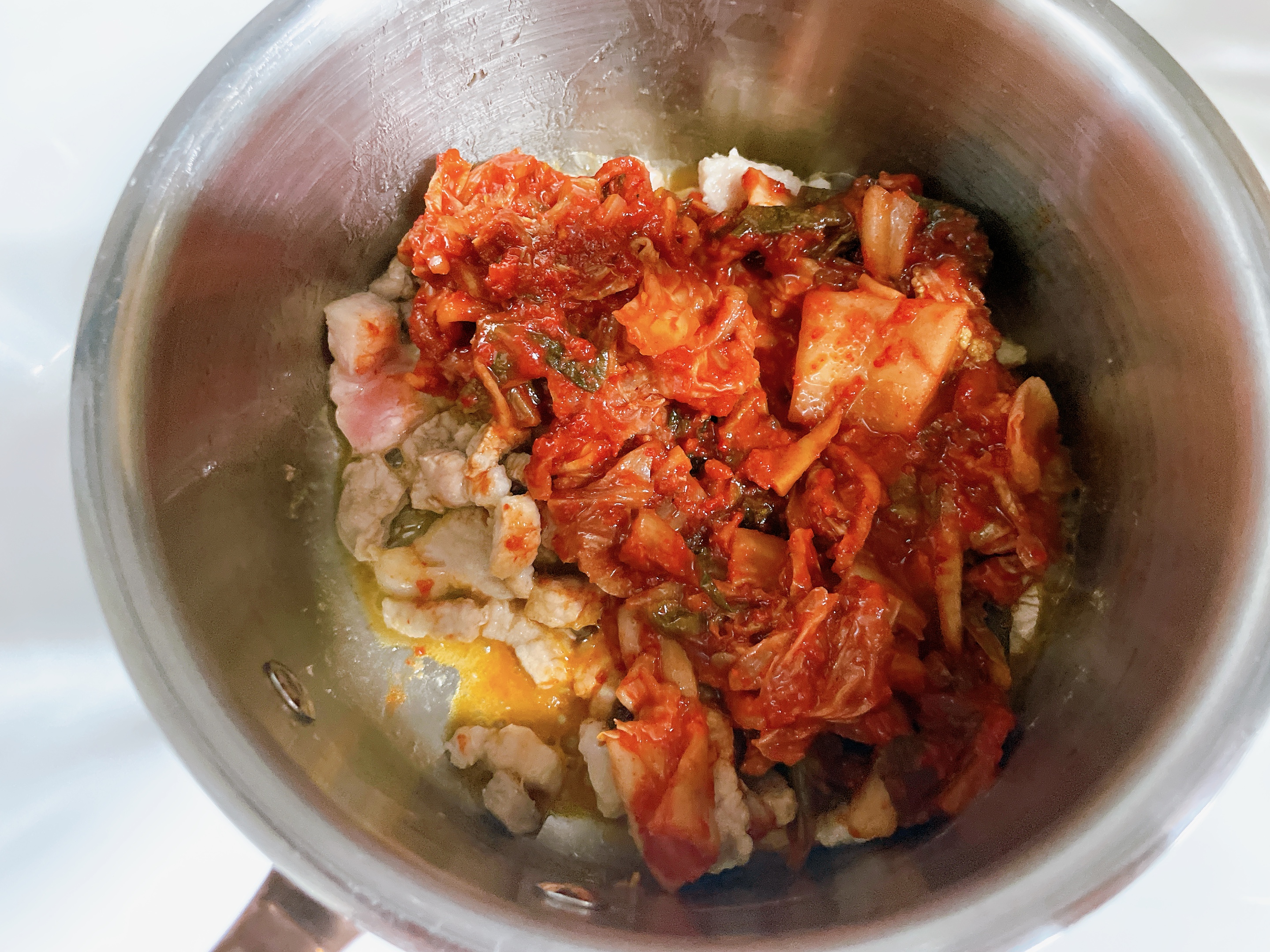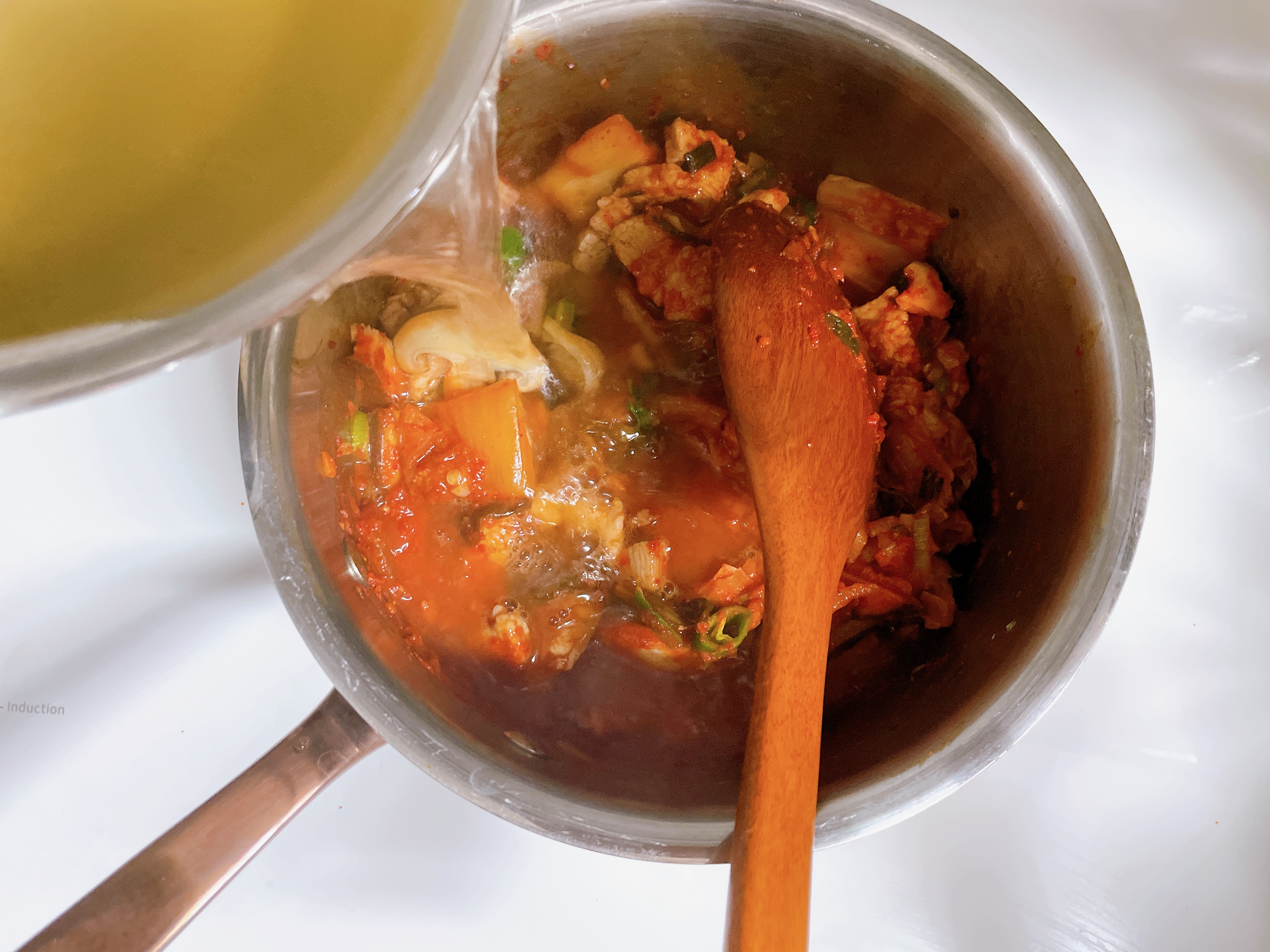 김치찌개는 한번 끓이고 또 데워먹어서 졸아지기때문에 육수를 너무 조금은 넣지 않았다!