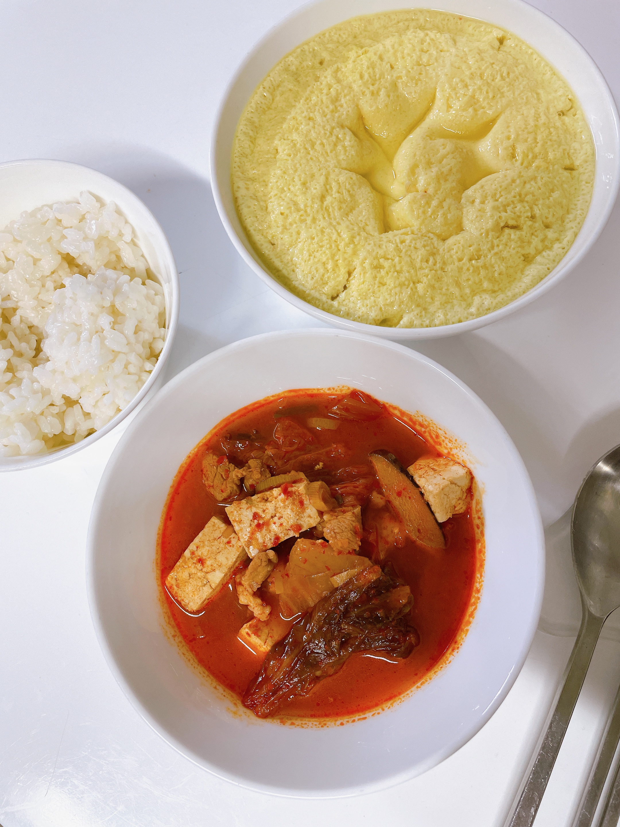 매콤한 김치찌개에 부드러운 계란찜까지~ 아주 조합이 좋다.