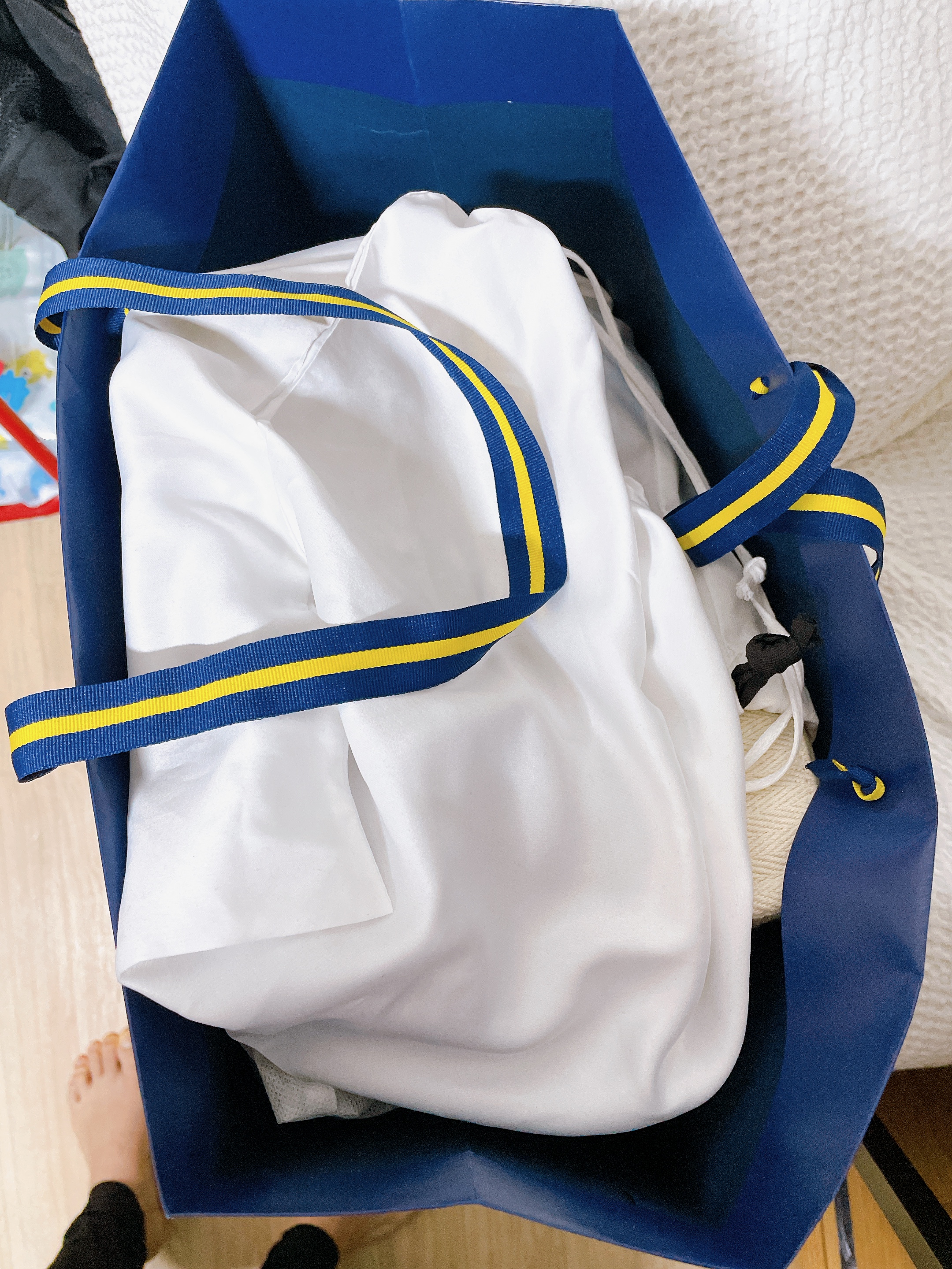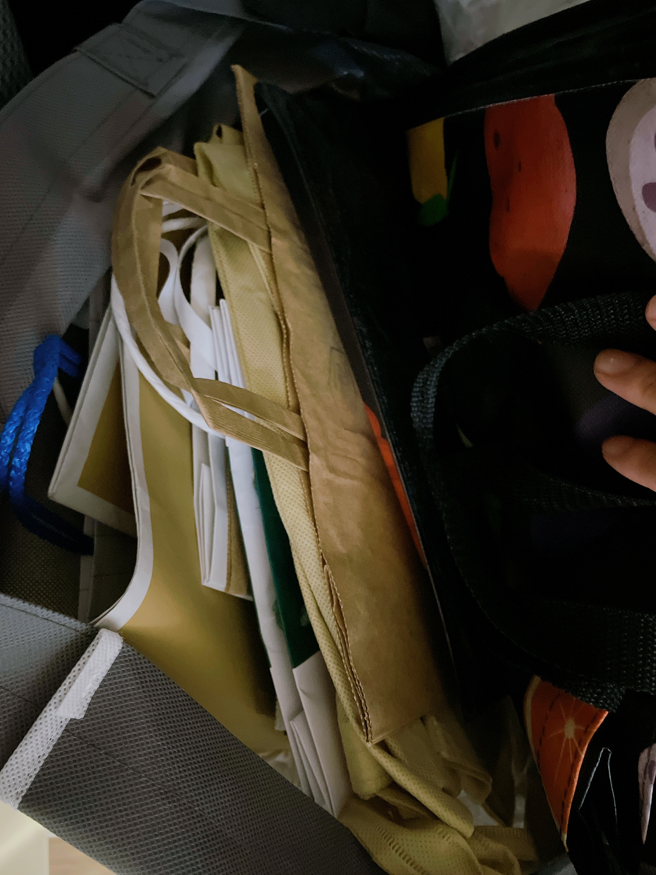 저렇게 가로로 긴걸 수납함에 두지않고 바닥에 둘수도 없구.~ 애매하니까 쇼핑백으로 만들어봤는데 딱이였어요.