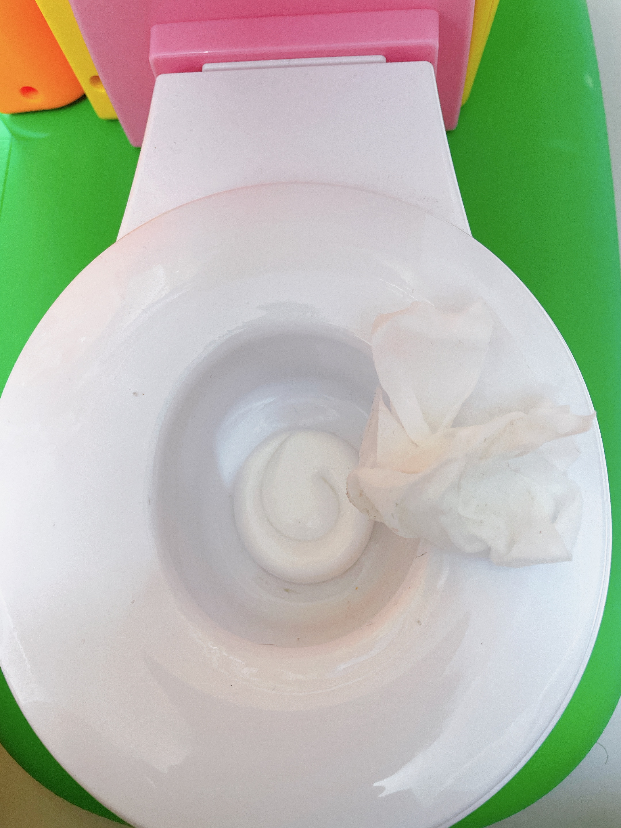 장난감청소를 하고난 뒤 멸균 구강티슈의 흔적..