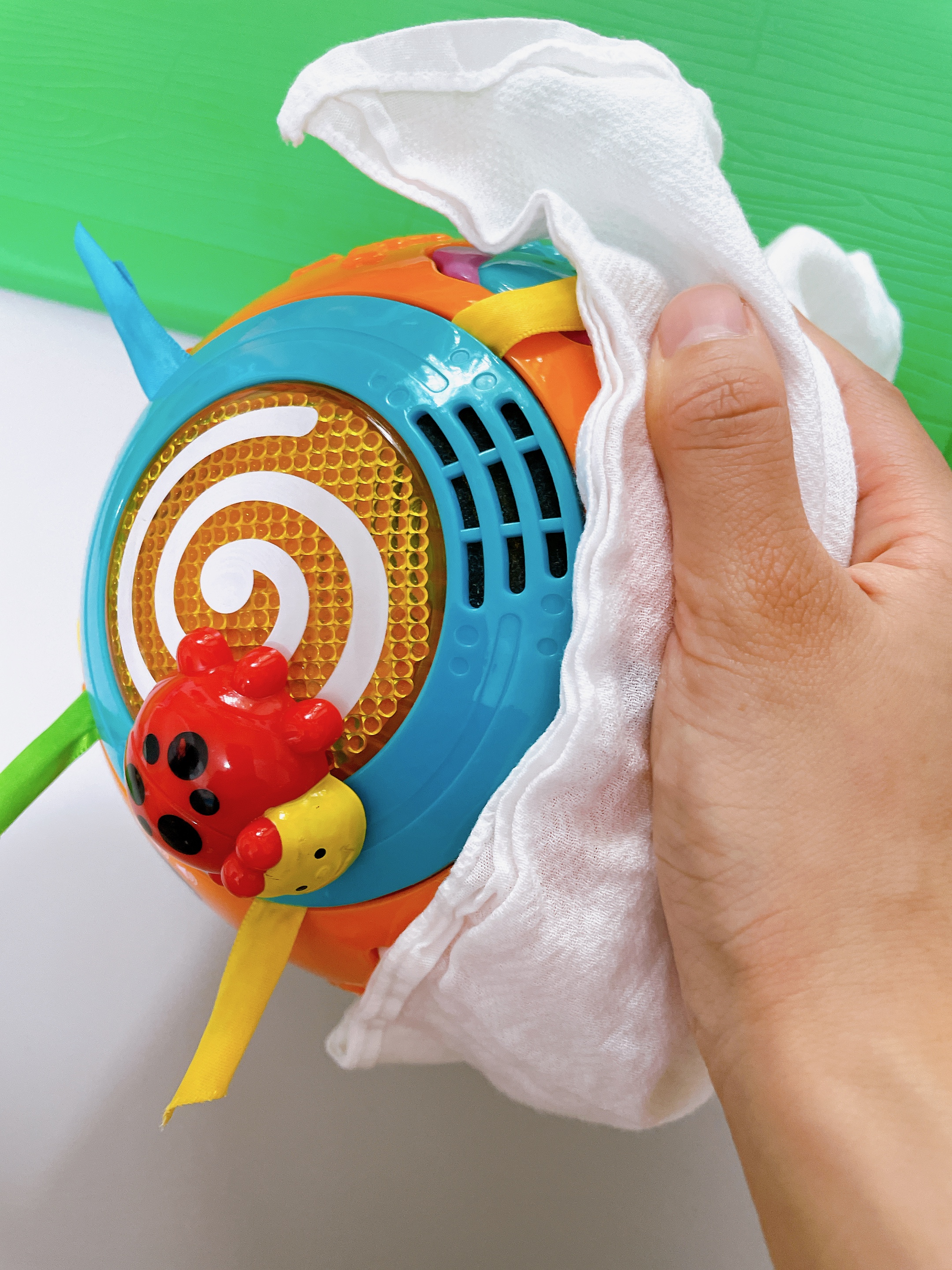 나는 아기 장난감을 닦을때는 물티슈를 사용하지 않는다.
