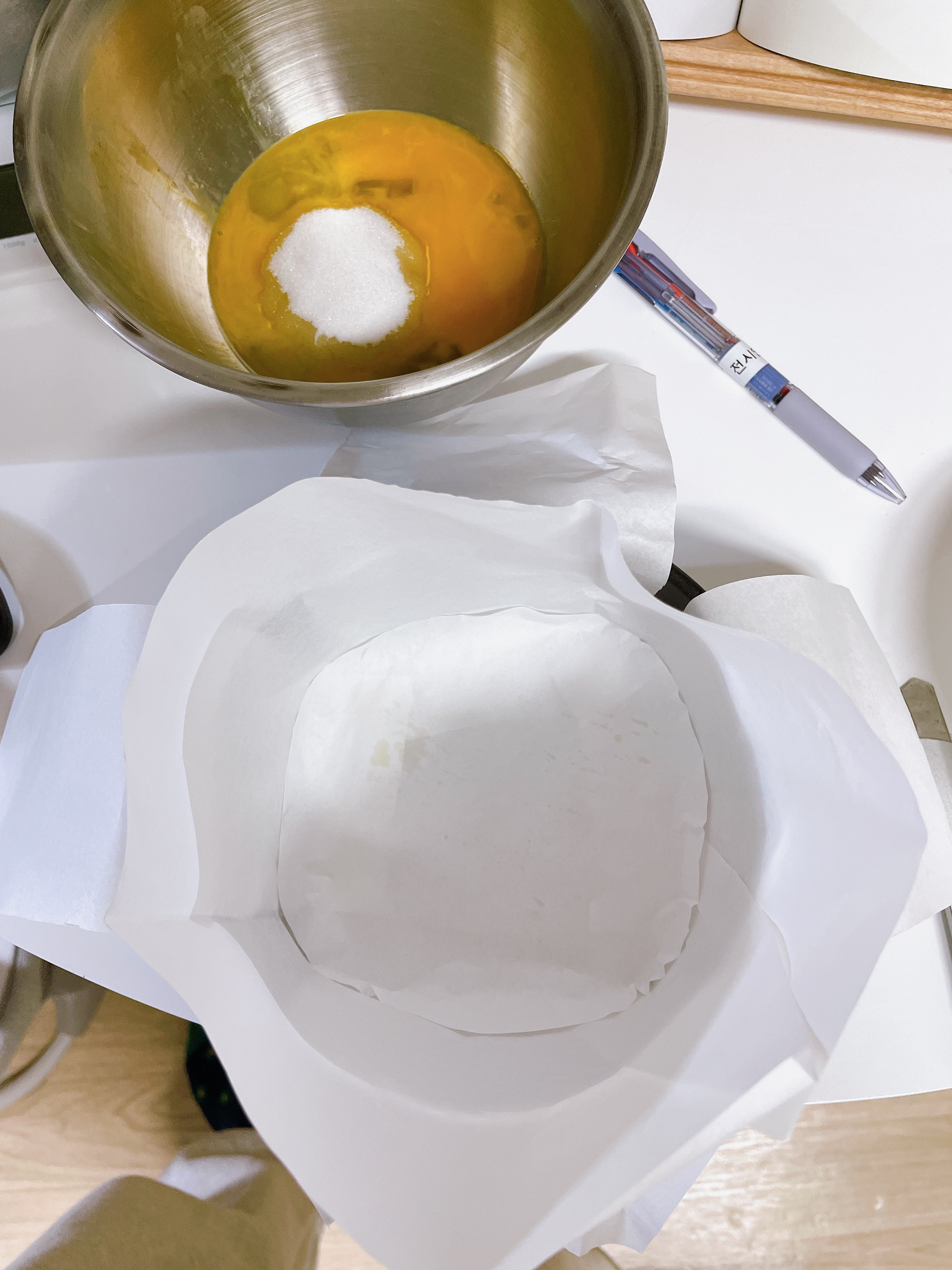 물론 이 책이 모든것을 설명해주진 않았다. 가령.. 원형틀에 반죽을 담기전에 유산지를 까는데 ,,저 유산지를 어떻게 원형틀에 접어서 넣는걸까..? 베이킹을 전혀 모르는 나는 원형틀에 유산지 접는법.. 을 검색하거나 찾아보고 결국 내 방식을 찾았다. 유산지를 어떻게 접을지 모르는