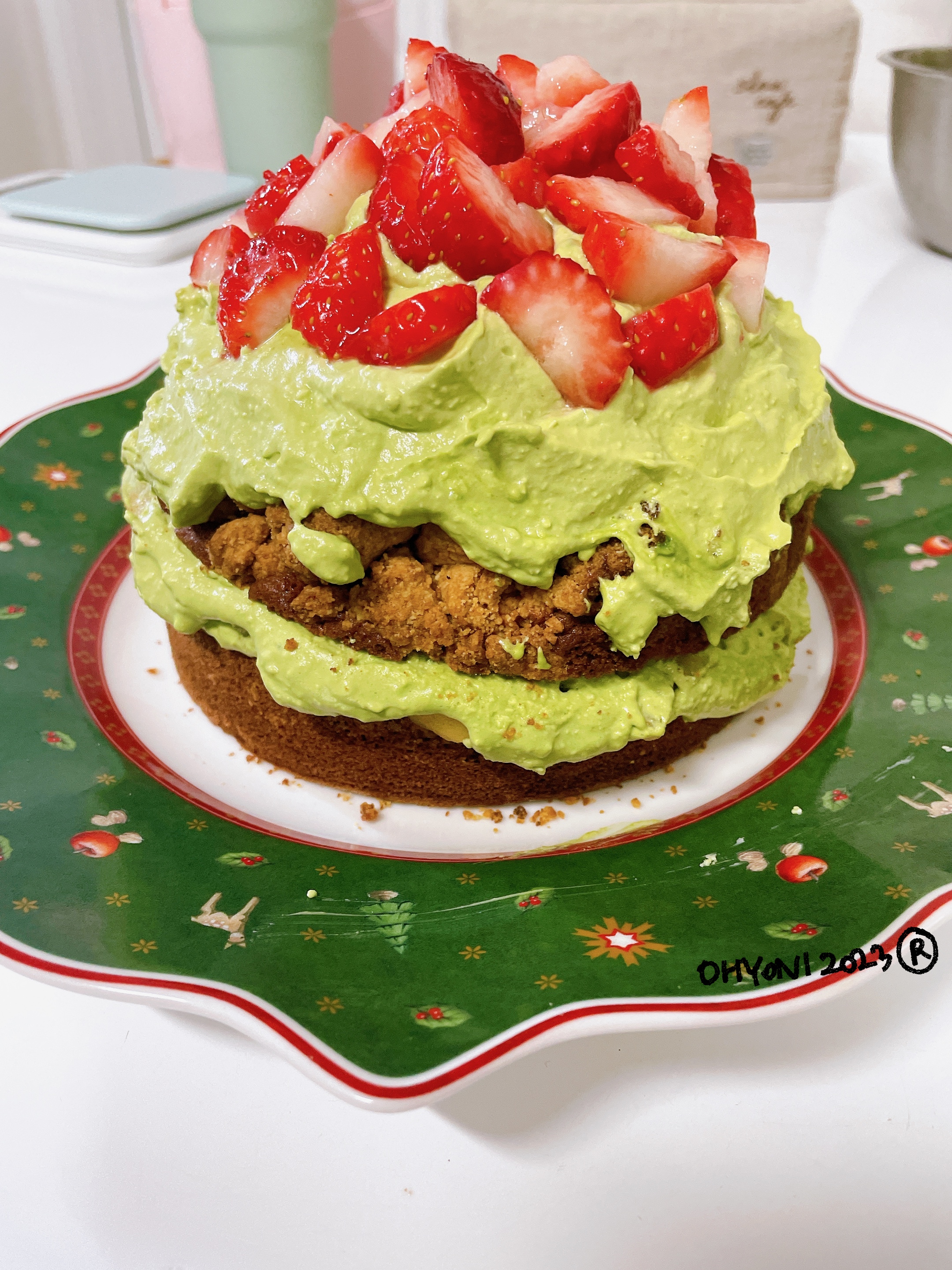 크리스마스 케잌으로 내가 선정한 것은 말차베리 파운드케잌이다. 마침 놀러온 친구가 딸기를 사가지고 와서 음! 데코는 딸기로 결정.