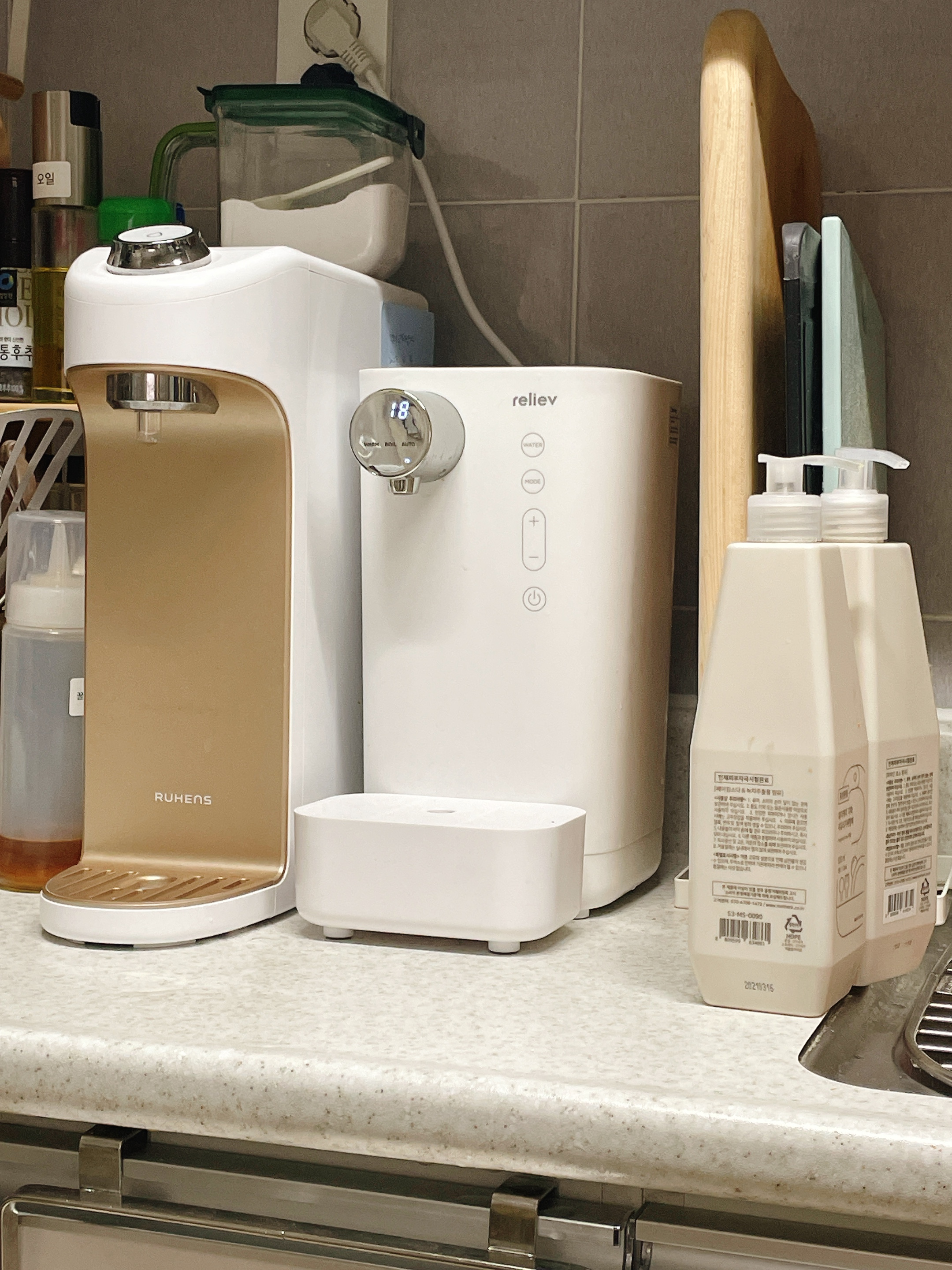 나는 자동으로 나오는 출수형인게 너무 편하다. 정수기처럼 사용이 가능한것이 가장 큰 장점..!
