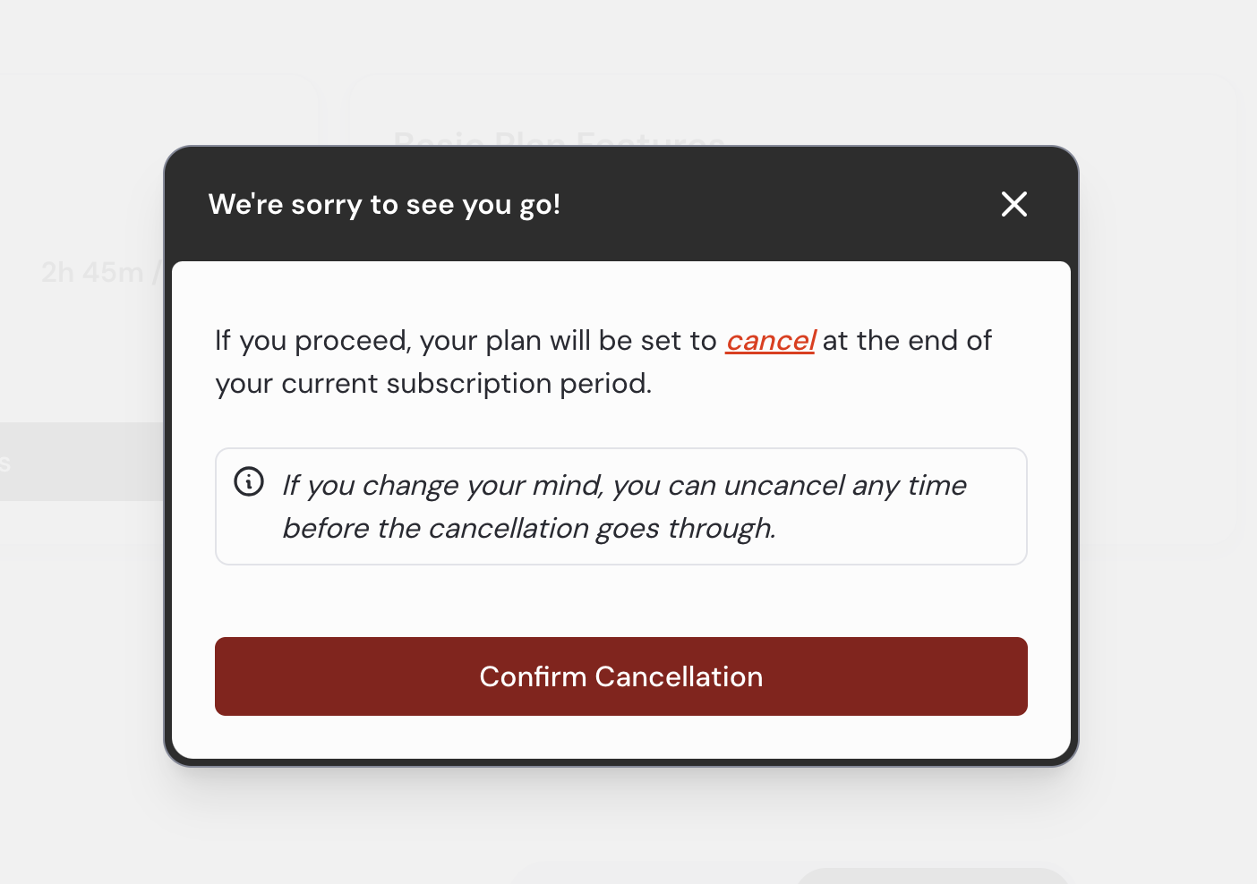 구독 취소를 하게되면 구독한 현재기간을 끝으로 취소될 것이다라는 내용입니다.