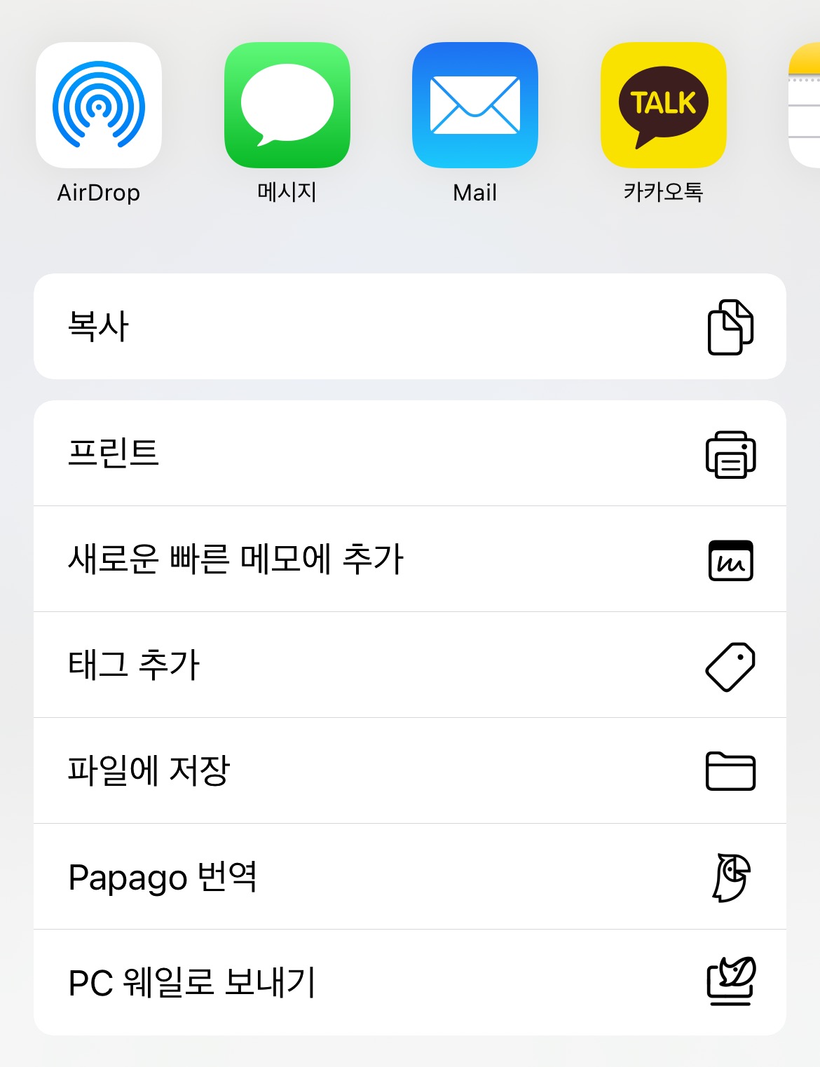 04. 스캔완료. 스캔된 이미지를 클릭하면 메일,메세지,카톡, airdorp 모두 바로 전송 가능하다.