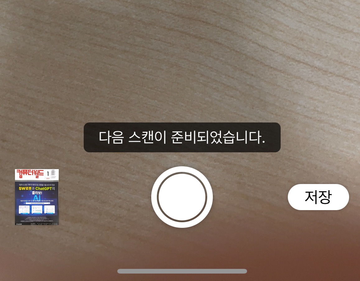 03.문서스캔을 누르고 스캔할 문서를 핸드폰 화면에 갖다대면 자동으로 찰칵 하면서 사진이 찍힌다. 우측하단에 저장버튼 클릭.