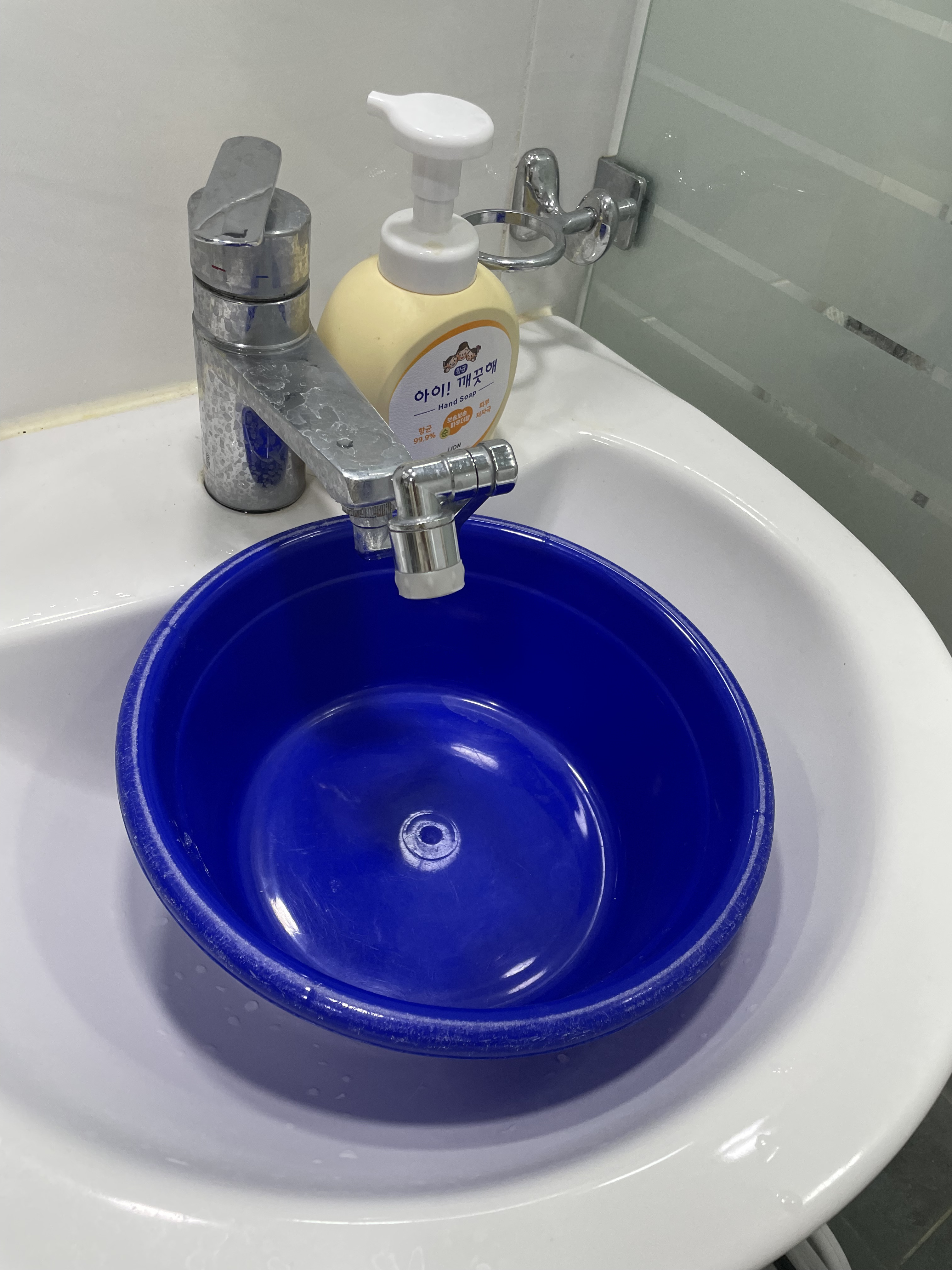 대야에 세재를 풀어서 신발을 담궈준다. 아이고 신발은 작은데 왜이리 꼬질꼬질한지..