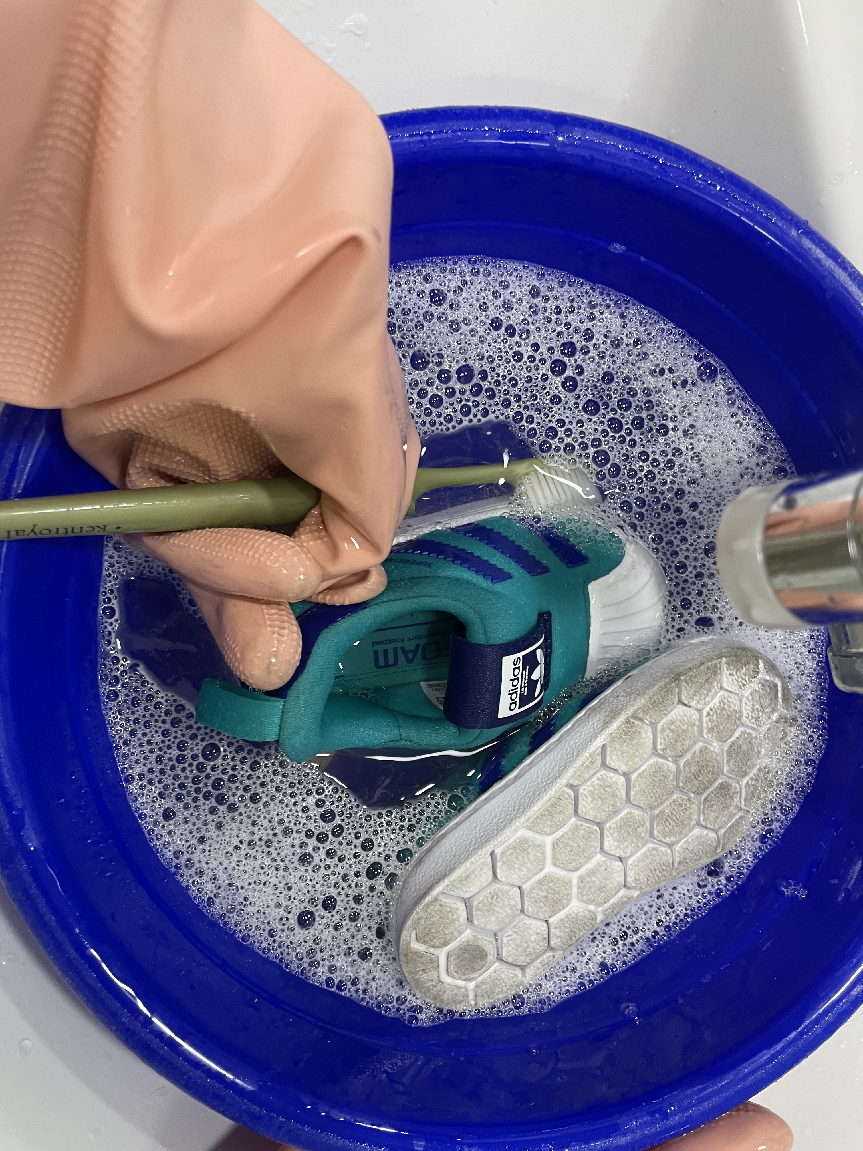 0. 과탄산소다를 물에 풀어서 신발을 담궈놓고 헹궈준다. (생략가능)