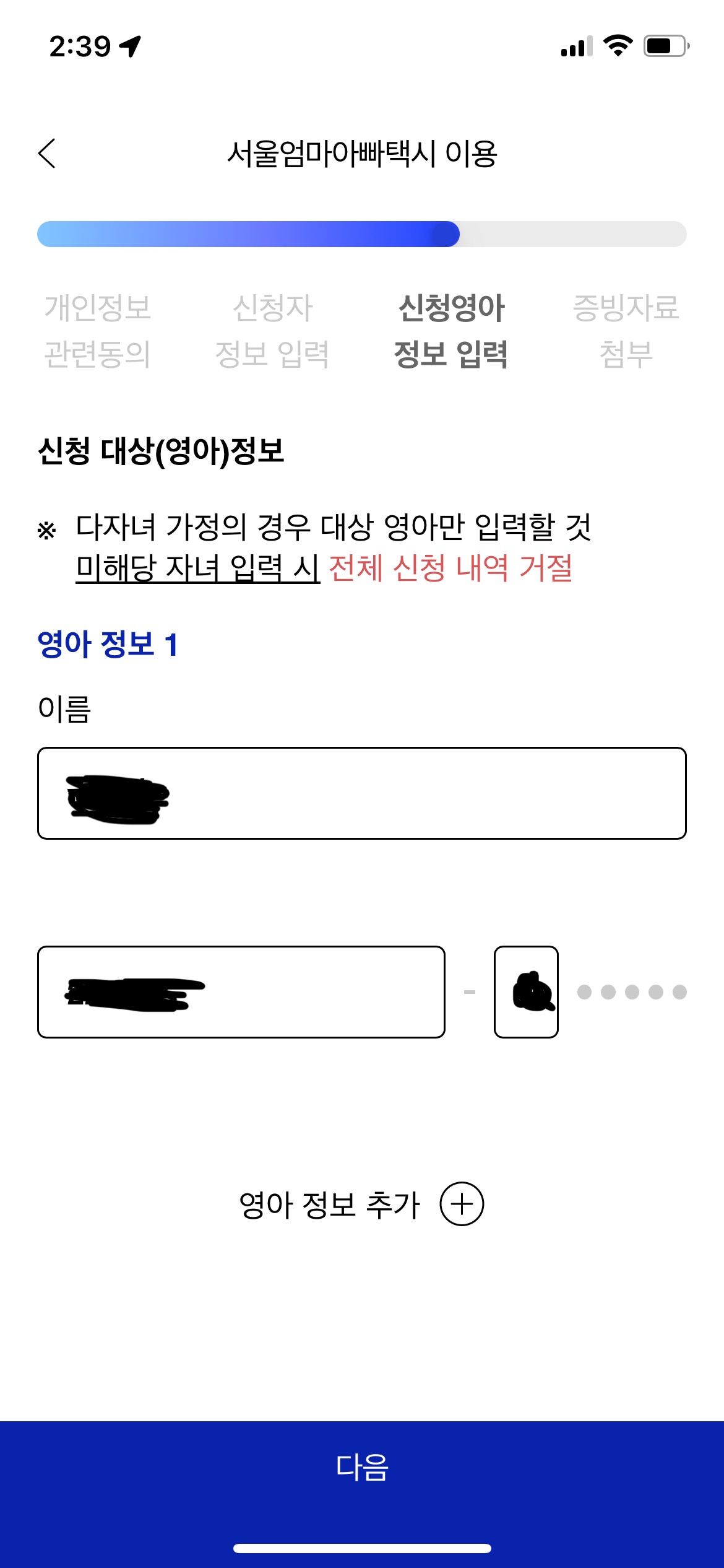 아이에 대한 정보를 입력하고 주민등록등본이 이미지로 있어야합니다. 이미지첨부 하면 끝!