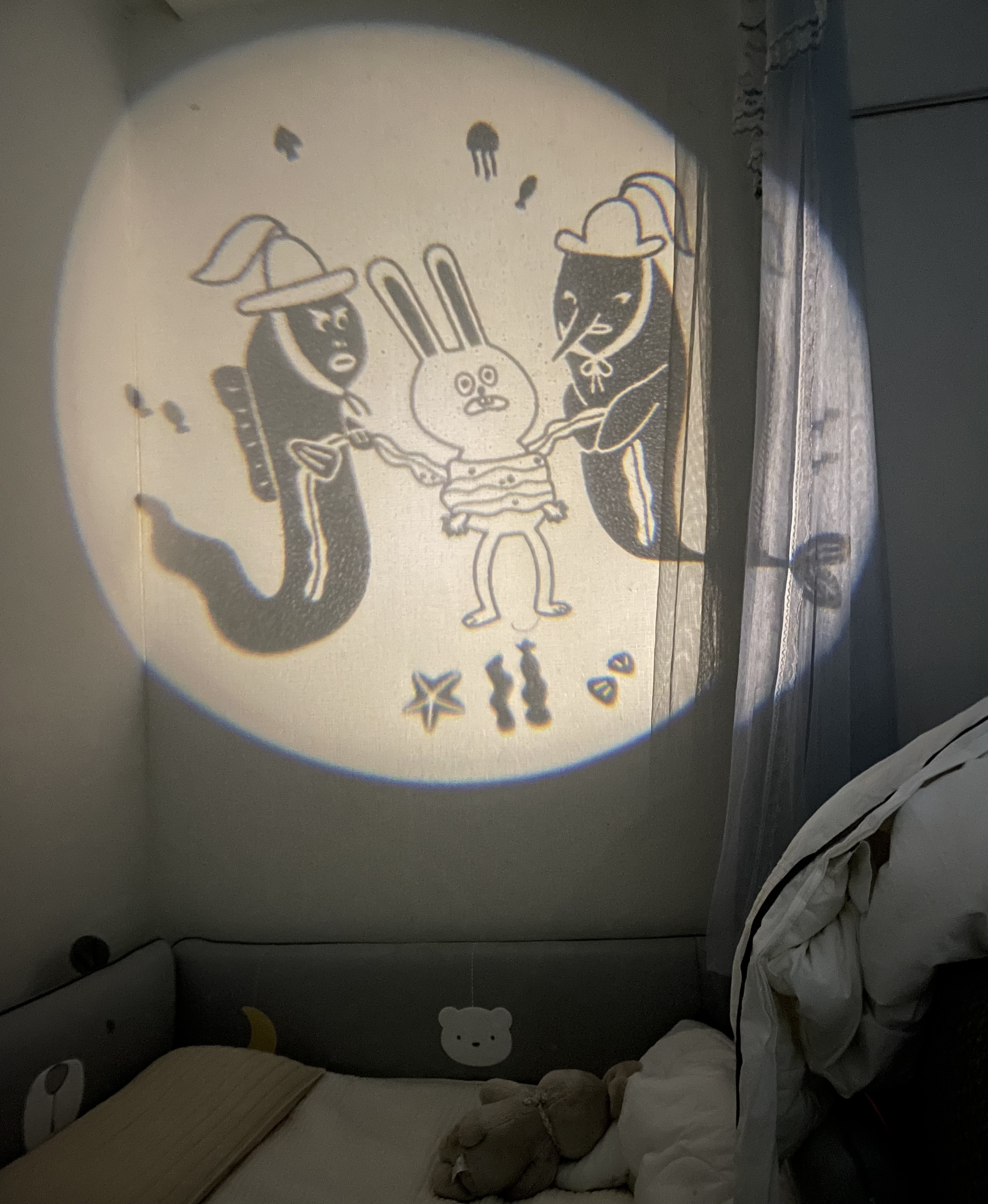 낮에 잘 놀다가 칭얼대거나 할때 흰벽면이나 색상이 진한곳에 비쳐줬더니