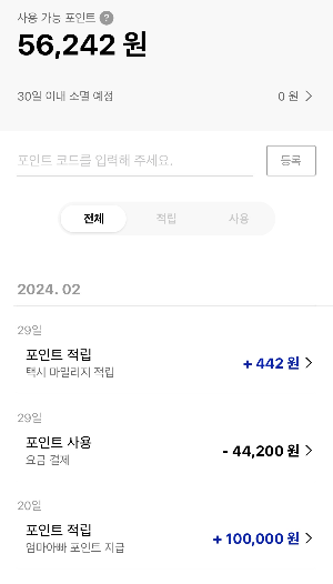 서울엄마아빠 택시비 지원사업으로 10만원 포인트를 받았다.