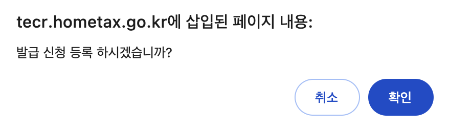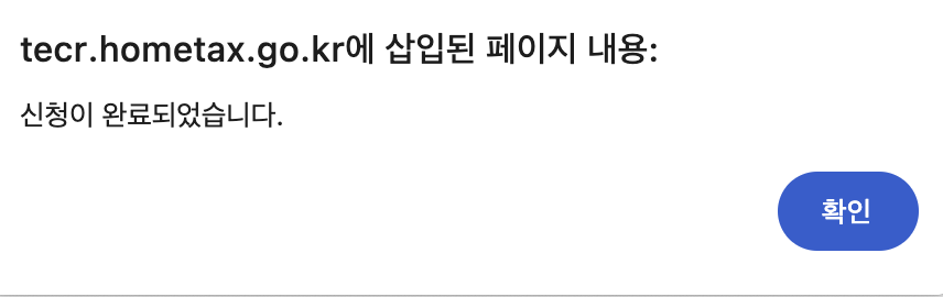 그렇게 신청하기를 누르면 위의 팝업이 나오면서 현금영수증 발행 신청이 완료된다.