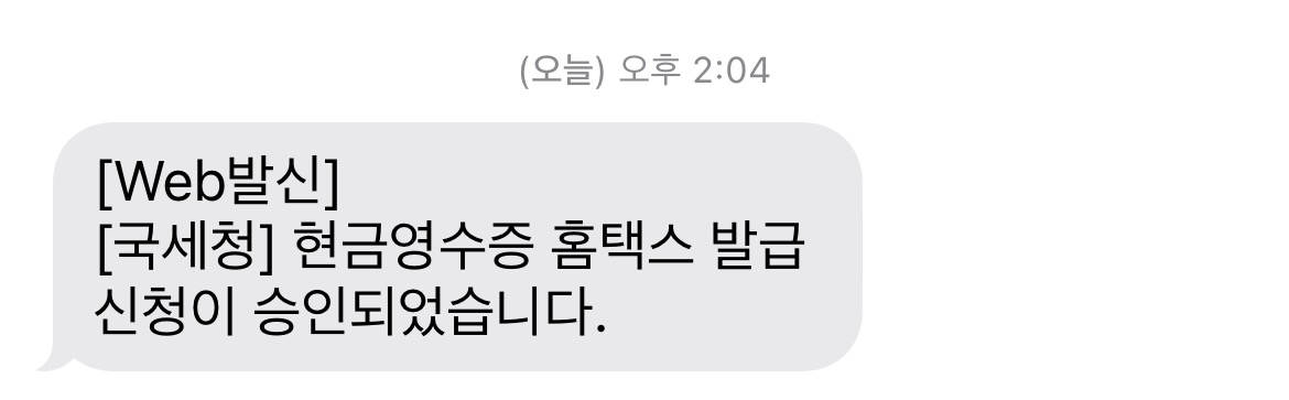 문자로도 현금영수증 신청이 승인되었다고 문자가 온다.
