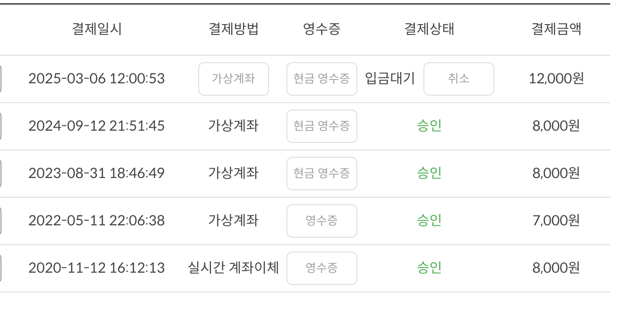 이전 결제 내역들을 보면.. 8,000원 7,000원 .. 올해 12,000원...